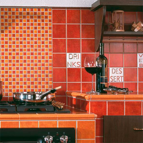 Производитель чешской керамической плитки Rako. Chilli - коллекция керамической плитки для кухни, выполненная в оранжево-красной гамме; в формате 10*10 для настенной плитки и 33,3*33,3 для напольной.
